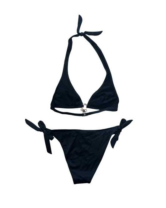 Dolce & Gabbana Black Halter Logo Bikini