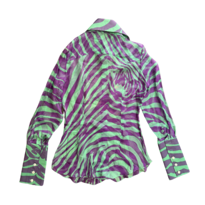 Dolce & Gabbana Fall 2000 Sheer Purple/Green Zebra Button-Up Top